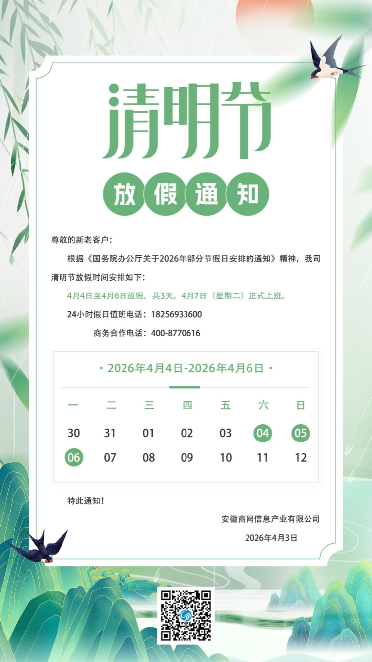 商网信息2026年清明节放假通知